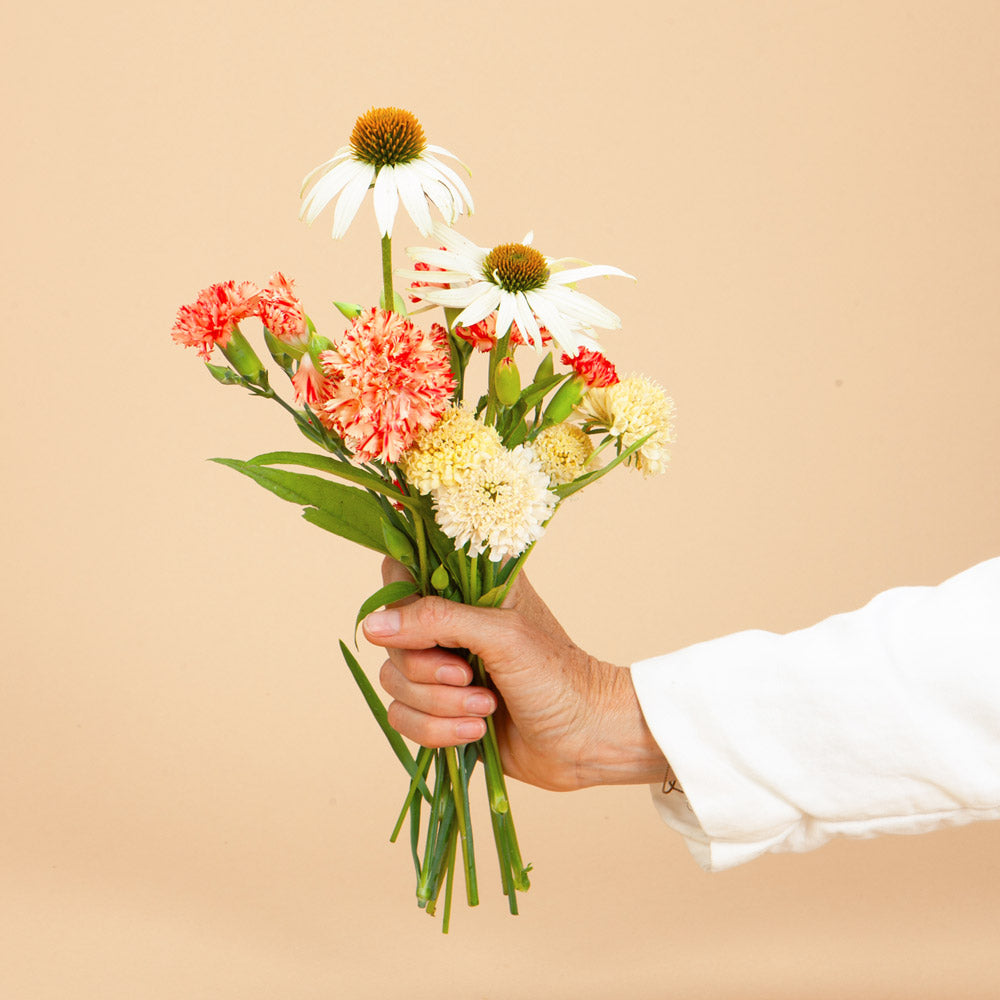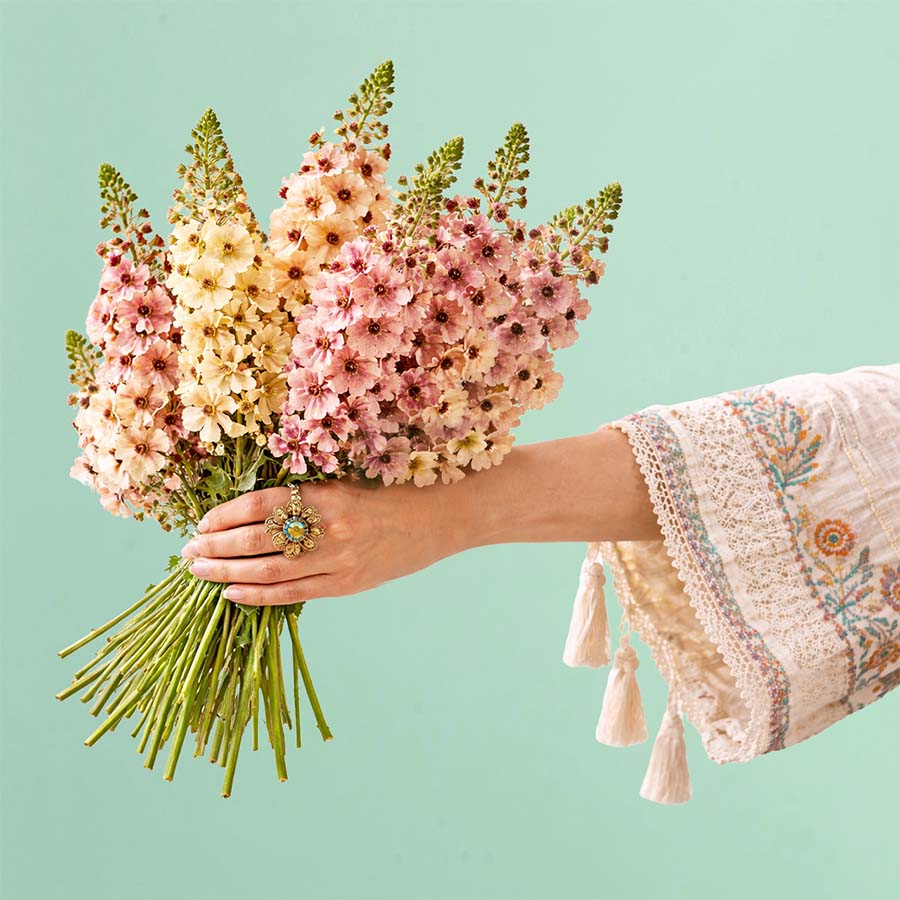 Includes 12 young plants grown in 2.5" diameter pots, 3 of each of these four varieties: Southern Charm Verbascum, Twizzle Coral Penstemon, Echinacea White Swan, and Scabiosa Fata Morgana.