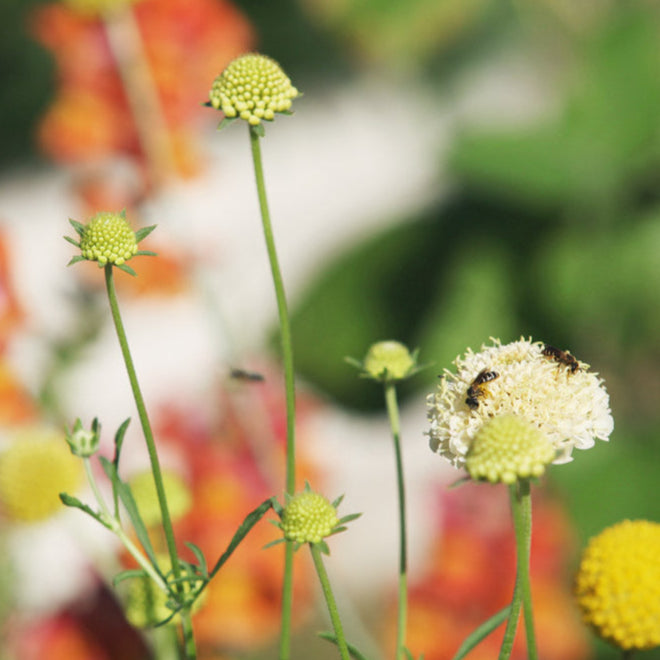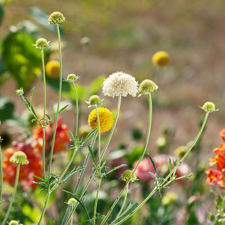 Scabiosa are an easy to grow and dependable burst of color. Sturdy little flowers on long stems rise above a pretty mound of foliage, and have a cottage garden feel with an urban edge.