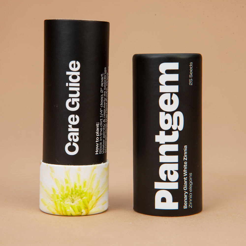 Includes five types of Zinnia seed tubes, individually packed in a little cotton bag: Benarys Giant White, Queen Lime with Blush, Zinderella Peach, Queen Lime with Orange, and Oklahoma Salmon.